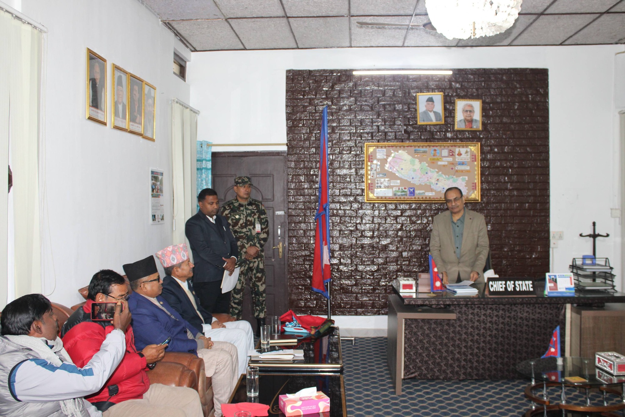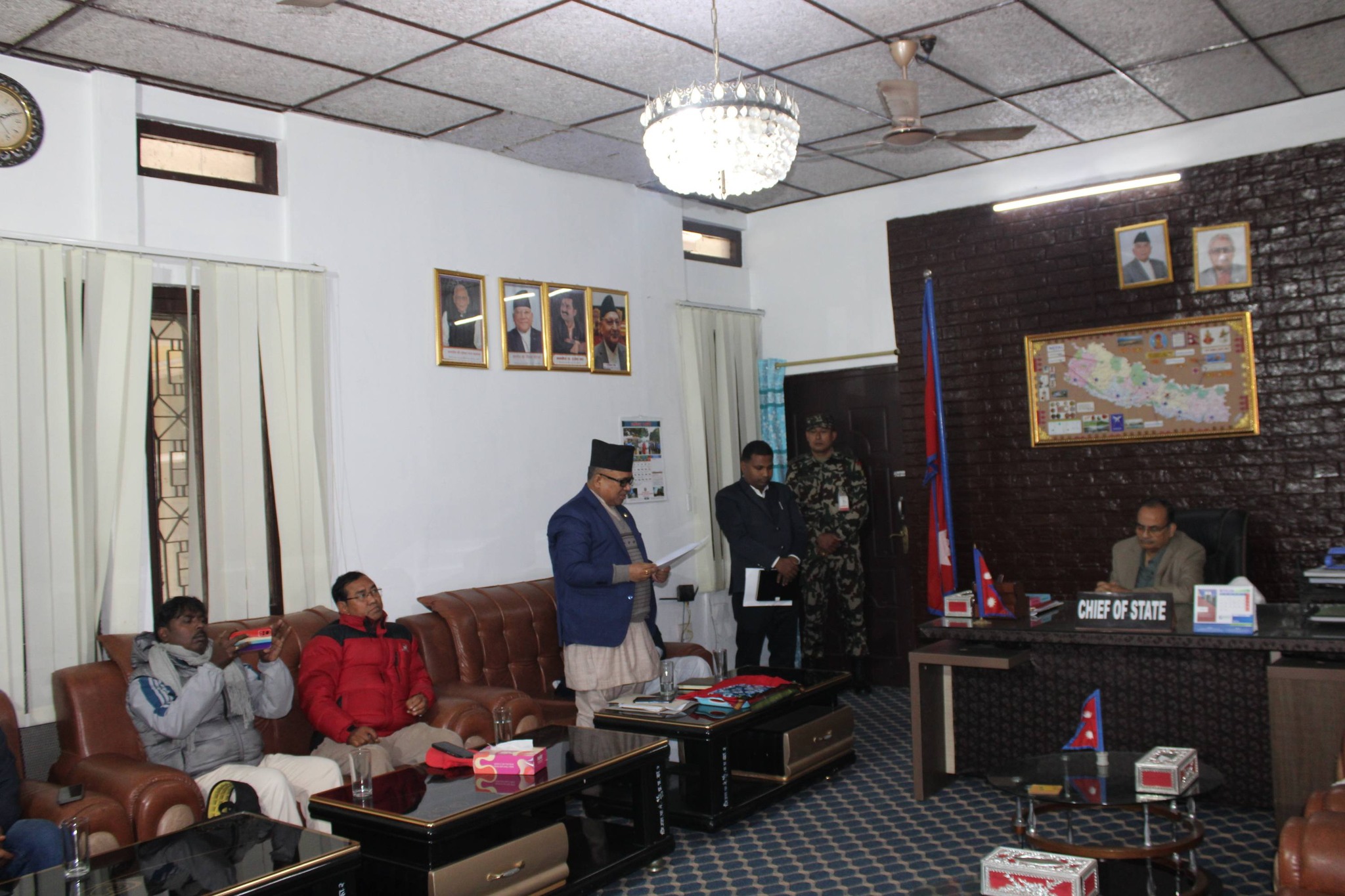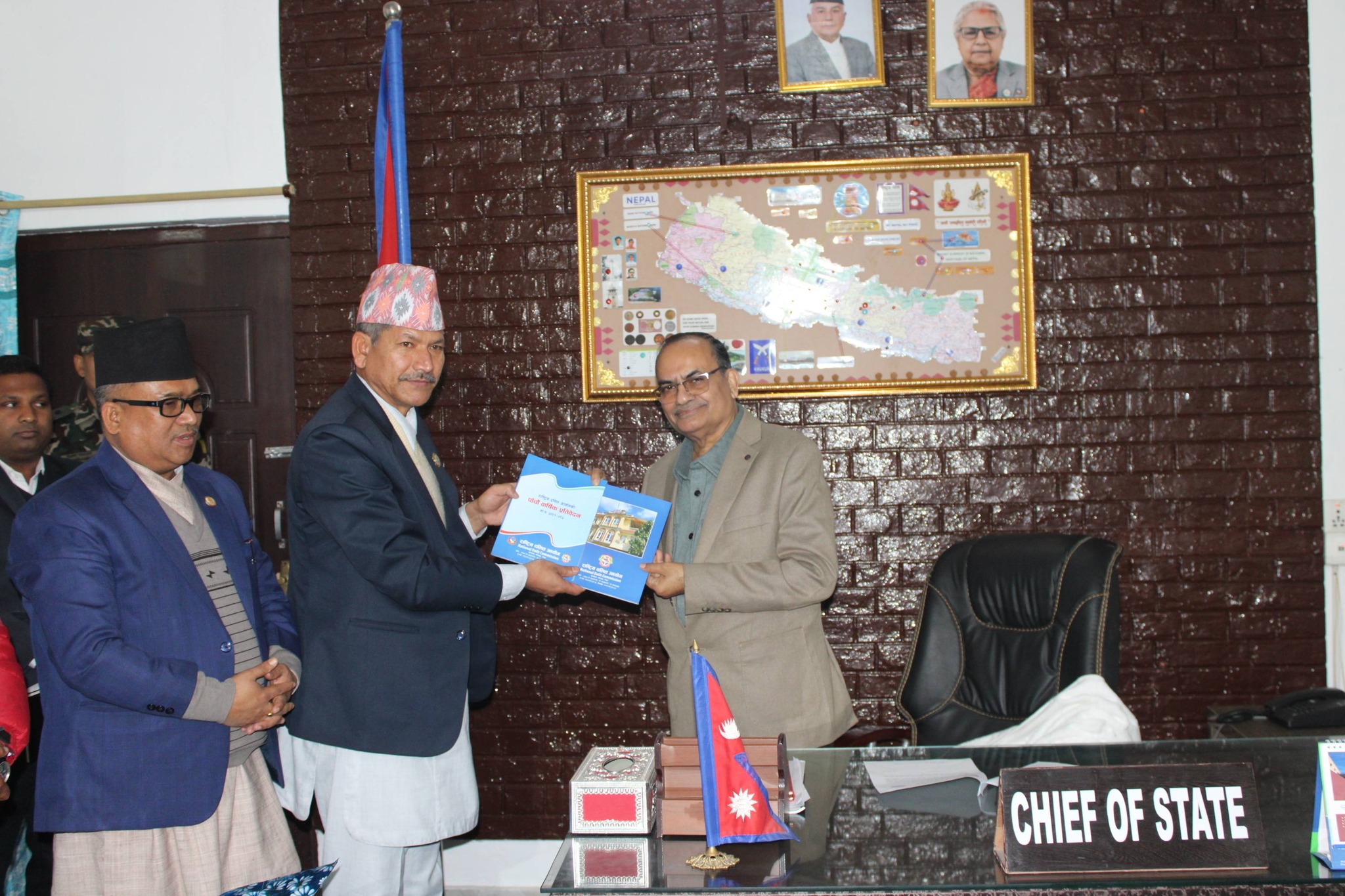 मधेस प्रदेश प्रमुख माननीय सुरेन्द्र लाभ कर्णज्यू समक्ष आर्थिक वर्ष २०८१/०८२ को वार्षिक प्रतिवेदन पेस (मिति २०८२/०९/०८ गते)