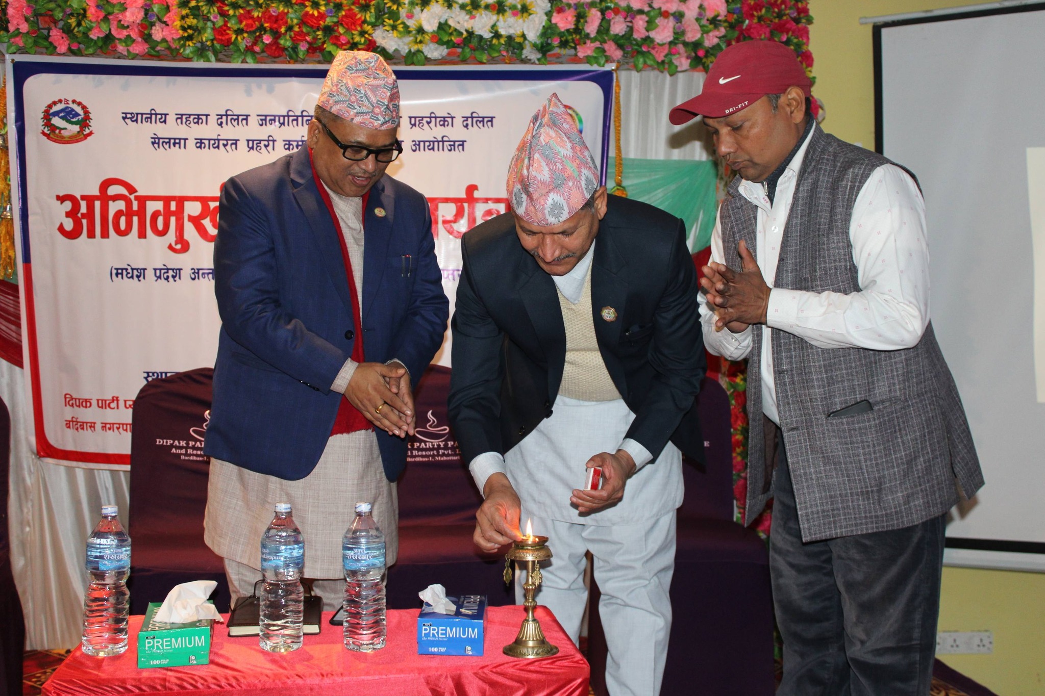 स्थानीय तहका दलित जनप्रतिनिधिहरू र नेपाल प्रहरीको दलित सेलमा कार्यरत प्रहरी कर्मचारीहरूका लागि आयोजित अभिमुखीकरण कार्यक्रम (मिति २०८२/०९/०९ गते)